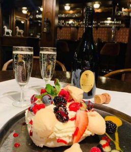 Empfang mit einer Flasche Schaumwein auf dem Zimmer